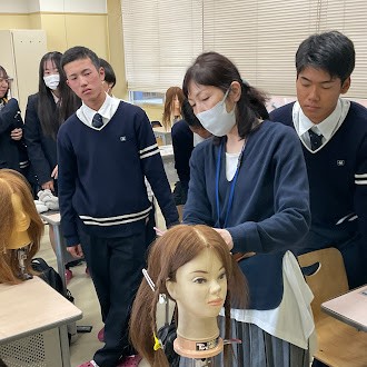 29日(水)、進路や職業選択について現実感を持って考えてもらおうと2年生を対象にした職業体験講座を開催しました。5年前から穴吹学園と高専連携で取り組んでいる「キャリア教育・地域人材養成事業」の一環。県内の専門学校13校の方々にお越しいただき、各教室で講義をしていただきました。 講座は保育、理学・作業療法、臨床工学、看護、自動車、コンピュータ、ゲーム、ブライダル、建築デザイン、公務員、調理、パティシエ、歯科、医療事務、福祉、観光、美容師、エステの18業種・職種。生徒は興味のある分野の講座に足を運んで仕事の内容や必要な資格などについて説明を受け、それぞれの体験型プログラムに取り組みました。 エステの講座に参加した男子生徒は「室内スプレーを作る体験をした。匂いでリラックス効果を感じることができた。ビューティに関する進路について考える良い機会になりました。」と話していました。また、医療事務の講座に参加した女子生徒は「実際に必要になる医療費の計算を体験した。点数の計算方法や接客の対応を学びました。卒業後は、医療関係に関わる仕事に就きたい。」と話していました。生徒一人一人の進路選択のヒントになればと思います。