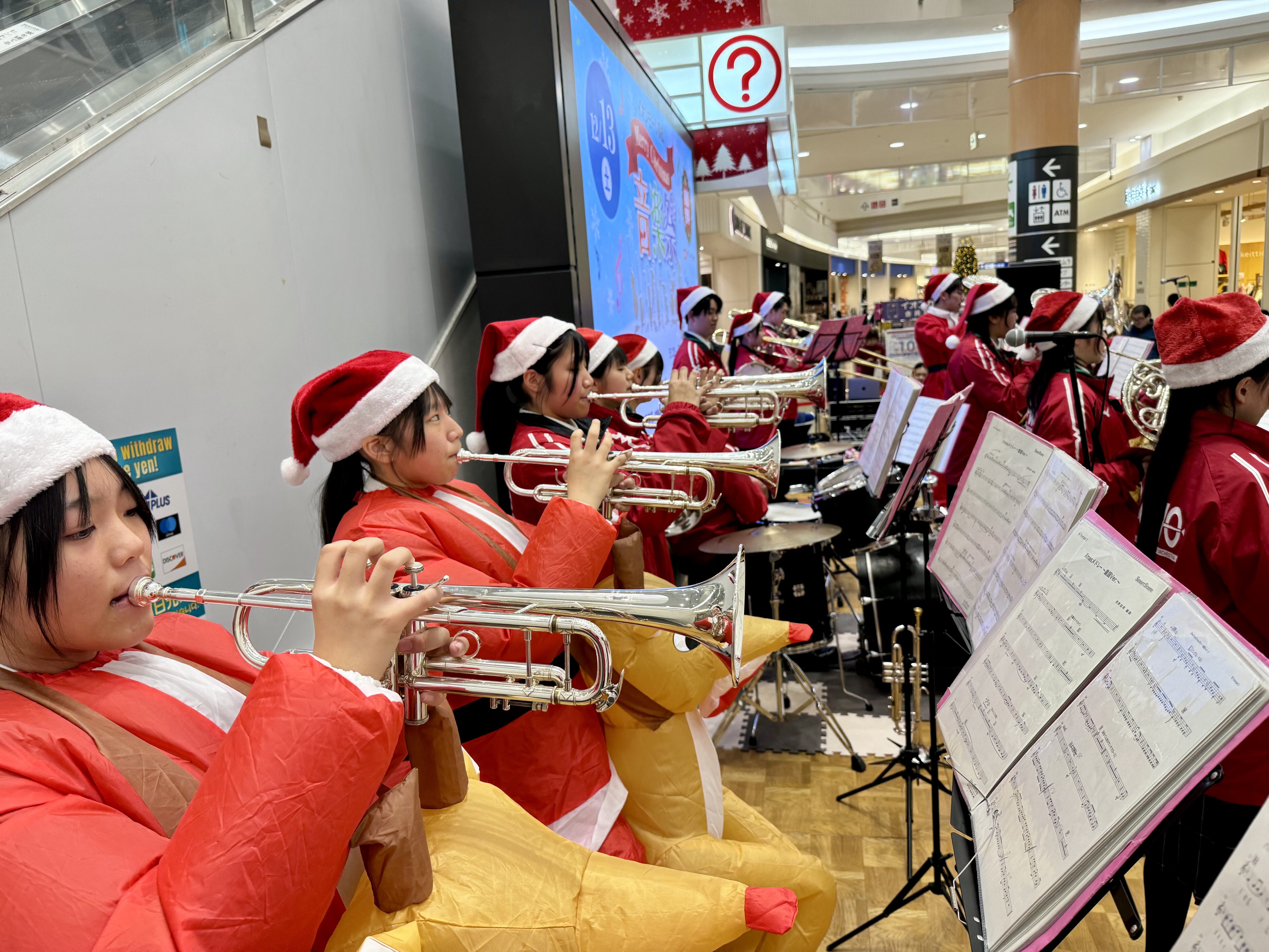 14時からはポップスステージを行い、クリスマスコンサートにぴったりな「クリスマスメドレー」をはじめ、幅広い世代に親しまれている「ジブリメドレー」など、全4曲を演奏。