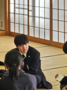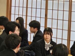 生徒たちは、交流を通して本校の設備の充実を改めて実感するとともに、文化祭等を生徒主体で運営している学校の事例を知り、本校でも参考にしてみたいという声が多く聞かれました。また、意見箱の設置や定期アンケートの実施、高校サミットによるオンライン交流など、生徒の意見を集めるための具体的な工夫にも触れ、生徒会の役割やあるべき姿について考える機会となりました。交流会後には、本校を含む8校の生徒会長が教育長への要望書提出のため香川県庁まで足を運びました。