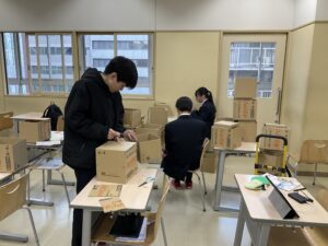 部員たちは、各自で分担を決め、テキパキとした動きで30個のボックスを完成させることができました。