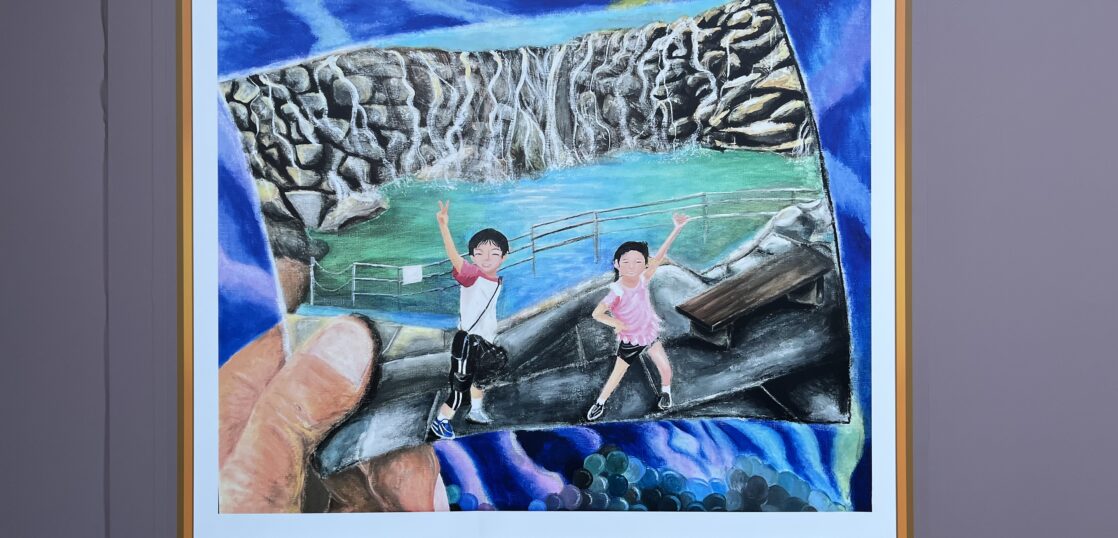 4月8日(水)より、香川県立ミュージアムにて「ホキ美術館ベストセレクションー極・写実ー」が開催されます。これに合わせて同館の外壁では高校生による瑞々しい作品の展示が行われています。本校からも、美術同好会の橋本怜奈さんの作品「滝の流れに導かれ」が展示中です。