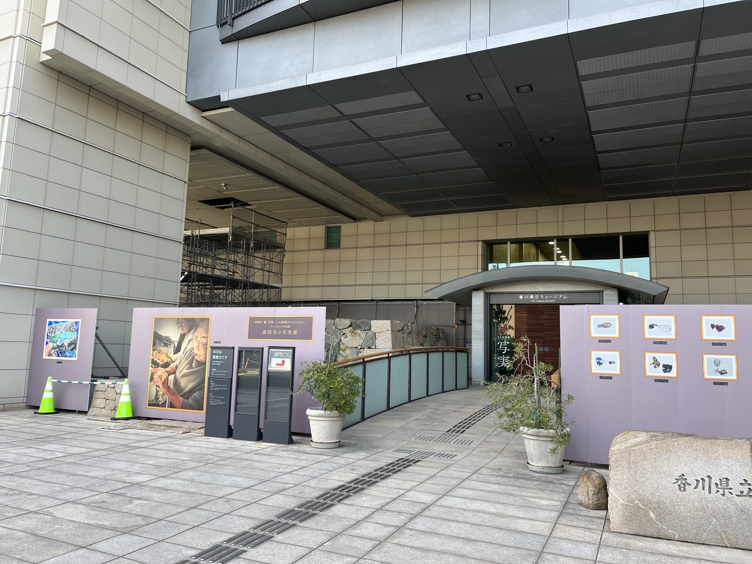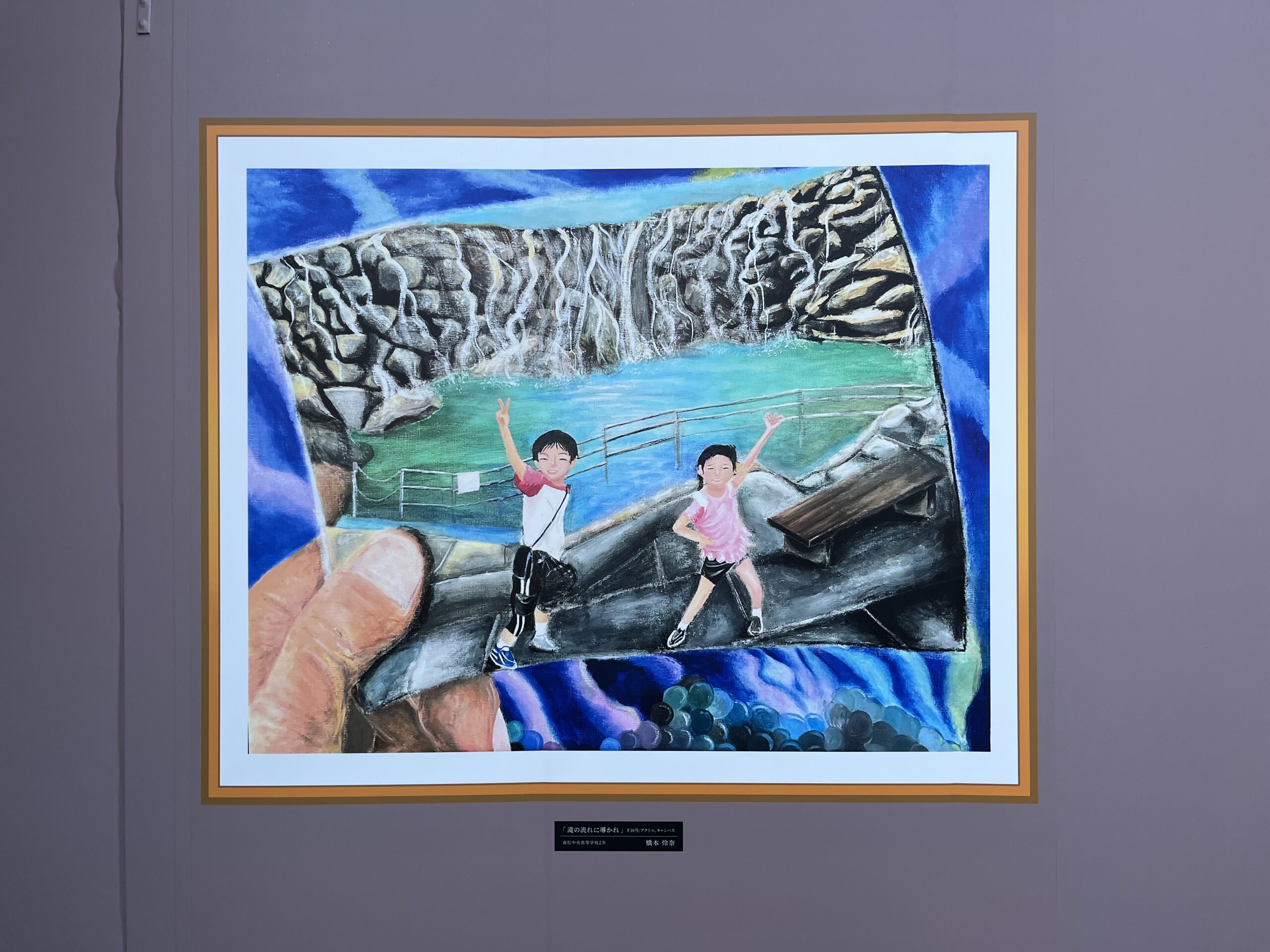4月8日(水)より、香川県立ミュージアムにて「ホキ美術館ベストセレクションー極・写実ー」が開催されます。これに合わせて同館の外壁では高校生による瑞々しい作品の展示が行われています。本校からも、美術同好会の橋本怜奈さんの作品「滝の流れに導かれ」が展示中です。