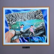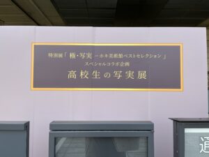 県立ミュージアム「ホキ美術展」で生徒作品を展示中